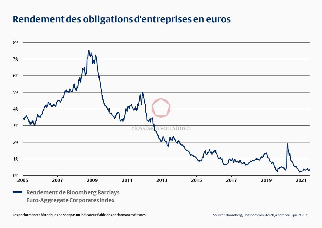 Ceux qui veulent en obtenir plus, doivent soit choisir des échéances très longues, soit accepter un faible rating de crédit de l'émetteur, ou les deux. Mais même les euro-obligations dont le rating est faible et qui présentent donc un risque de défaillance plus élevé ne rapportent en moyenne que 2,7 %, soit moins que jamais auparavant (cf. graphique 12). Il faut étudier en profondeur les différents émetteurs pour obtenir un rendement adapté au risque. Même ces obligations n'offrent plus une protection suffisante contre l'inflation.